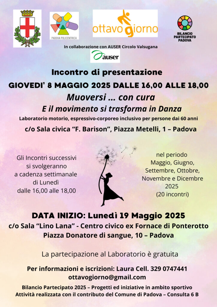 Gli incontri si svolgeranno a cadenza settimanale, di Lunedì, dalle 16.00 alle 18.00, presso la Sala “Lino Lana” del Centro civico ex Fornace di Ponterotto, Piazza Donatore di sangue, 1 – Padova.